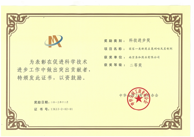 2013藥業(yè)科技進步獎二等獎