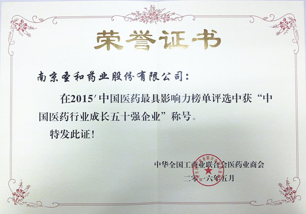 2015年度中國醫(yī)藥行業(yè)成長50強企業(yè)