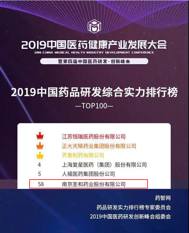昨晚看朋友圈,看到公司的同事在朋友圈里說,圣和有幸進(jìn)入《中國(guó)研發(fā)綜合實(shí)力旁排行榜100強(qiáng)》,忍不住打開看一下到底是第幾名,于是就倒著從第100名開始尋找圣和藥業(yè)的名字,沒想到排名還是第58名,然后,再去看化學(xué)藥研發(fā)能力排行榜,竟然是24名。
