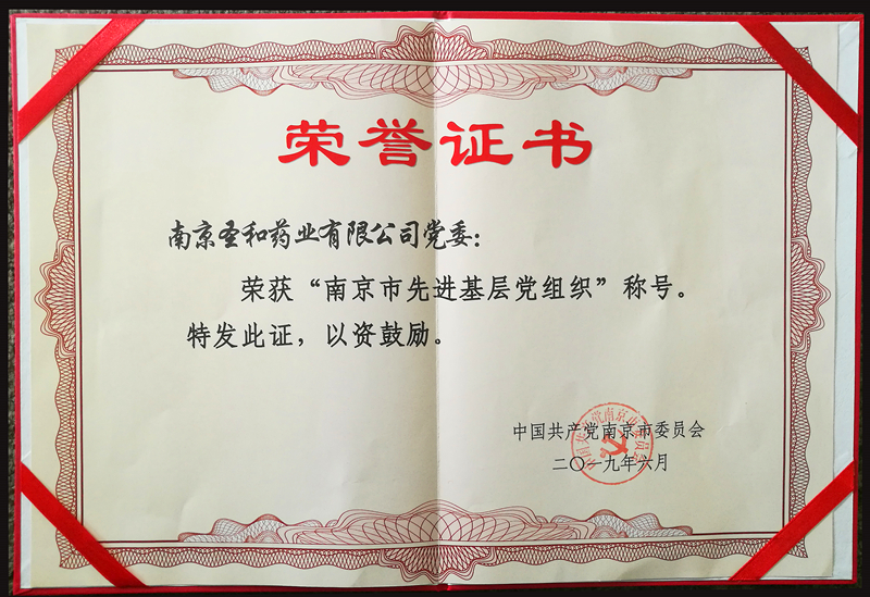公司黨委獲“南京市先進基層黨組織”榮譽稱號